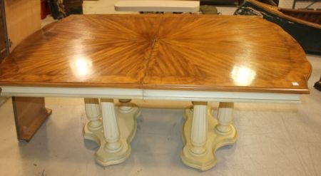 938 Stanley Furniture Company Double Pedestal Dining Table Table has one skirted leaf 16" w. ; matches lot #936, #937, #939
