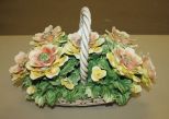 Porcelain Basket with Flowers, Made in Italy; 13" w., 11" h. Porcelain Basket with Flowers, Made in Italy; 13" w., 11" h.