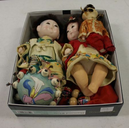 Two Oriental Painted Ceramic Dolls, Handpainted Oriental Pin Cushions, Various Oriental Small Dolls. Two Oriental Painted Ceramic Dolls, Handpainted Oriental Pin Cushions, Various Oriental Small Dolls.
