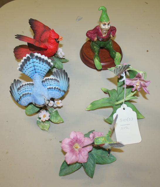 Lenox Blue jar (broken wings), Three Porcelain Figurines and (broken) Porcelain Elf Lenox Blue jar (broken wings), Three Porcelain Figurines and (broken) Porcelain Elf