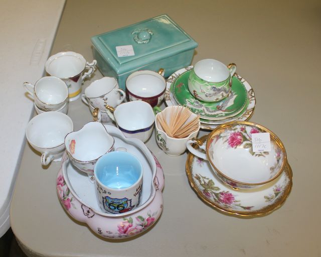 316 Miscellaneous Group of Small Cups, Saucers, Covered Rectangular Box