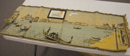 Framed Print of Train and Venice Tapestry 53"w., 20"h. Framed Print of Train and Venice Tapestry 53"w., 20"h.