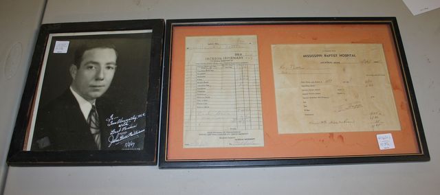 Copy of Autographed Picture of John Bell Williams along with two 1945 hospital receipts 9"w., 10"h. Copy of Autographed Picture of John Bell Williams along with two 1945 hospital receipts 9"w., 10"h.