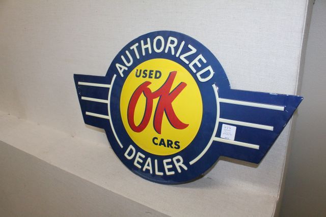 OK Used Cars Sign 12"h., 21"w., reproduction. OK Used Cars Sign 12"h., 21"w., reproduction.