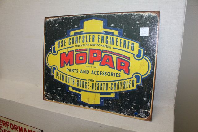 Chrysler Engineered Mopar Sign 12"h., 16"w., reproduction. Chrysler Engineered Mopar Sign 12"h., 16"w., reproduction.