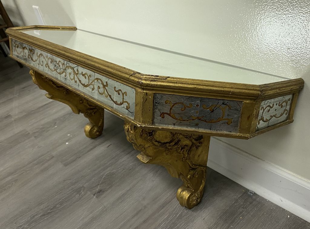 Vintage Venetian Mirrored Wall Shelf, gold gilt, good condition. Location Right Corner Space Vintage Venetian Mirrored Wall Shelf, gold gilt, good condition. Location Right Corner Space