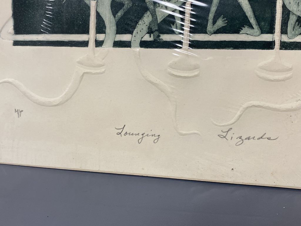 Kay Snobgrass "Lounging Lizards" Embossed Paper Art, unframed. Kay Snobgrass "Lounging Lizards" Embossed Paper Art, unframed.