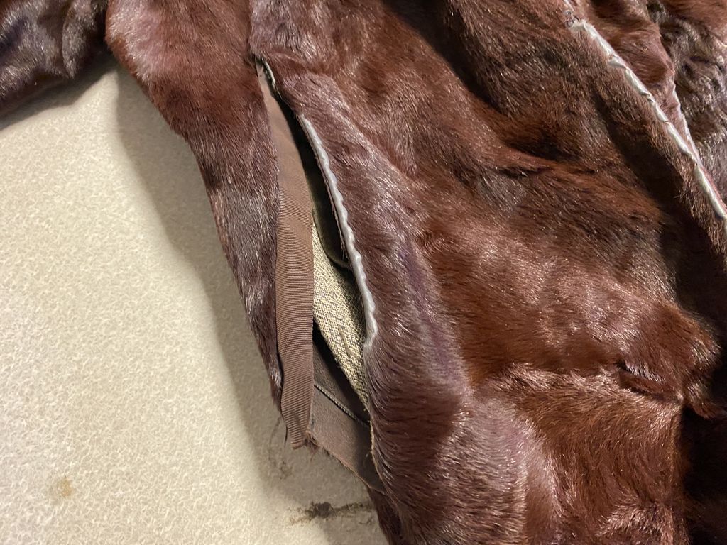 David Green Master Furrier Beaver Long Coat, inside monogrammed lining, has age wear, has some tears. David Green Master Furrier Beaver Long Coat, inside monogrammed lining, has age wear, has some tears.