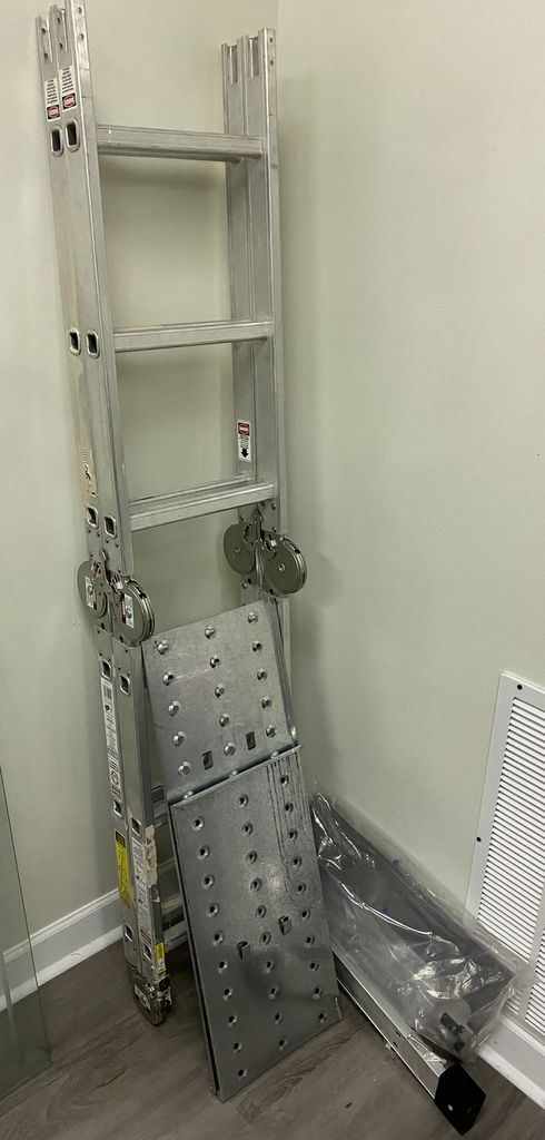 Mt Multi Ladder 5 Ladders in 1, MTIAA-22, 375lb, good condition. Location Left Conference Room Mt Multi Ladder 5 Ladders in 1, MTIAA-22, 375lb, good condition. Location Left Conference Room