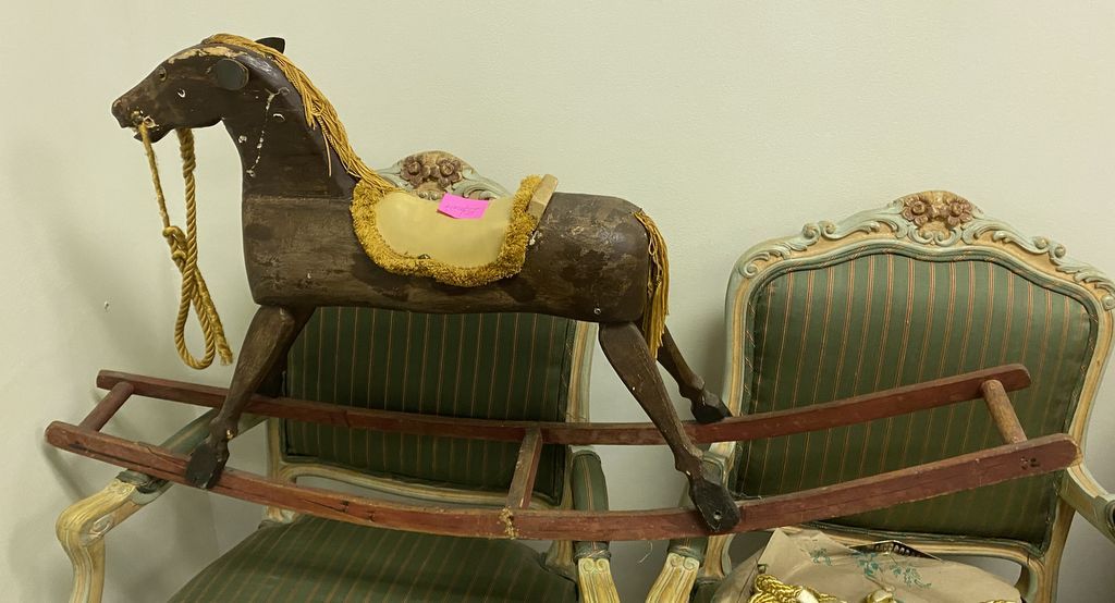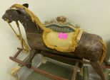 Antique Wooden Child's Rocking Horse, has age wear, hand crafted. Location Left Conference Room Antique Wooden Child's Rocking Horse, has age wear, hand crafted. Location Left Conference Room