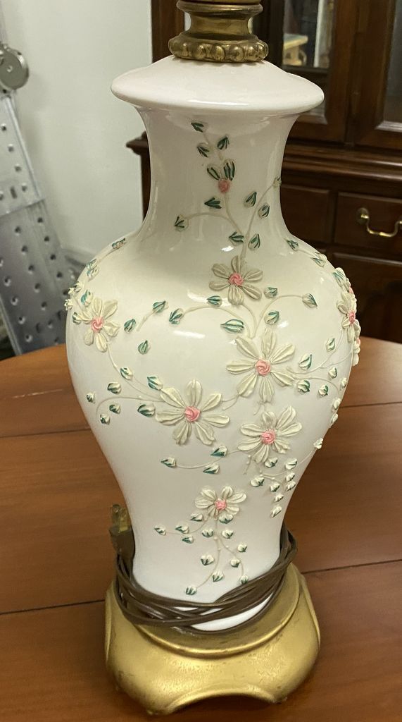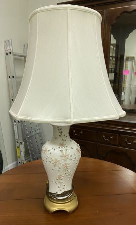 Porcelain Floral Vase Lamp, base, with shade. 32" h. Location Left Conference Room Porcelain Floral Vase Lamp, base, with shade. 32" h. Location Left Conference Room