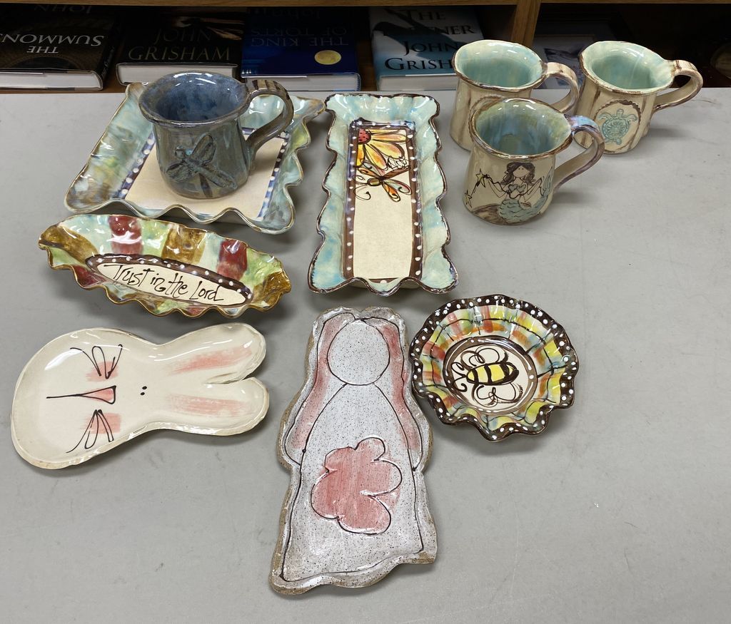 Heart Felt Traditions Pottery, trays, Twizted Mugs, dishes. Location Room By Kitchen Heart Felt Traditions Pottery, trays, Twizted Mugs, dishes. Location Room By Kitchen