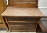 Victorian Eastlake Style Dresser, marble top, three drawers, mirror, used condition. Location Middle Right Office Victorian Eastlake Style Dresser, marble top, three drawers, mirror, used condition. Location Middle Right Office
