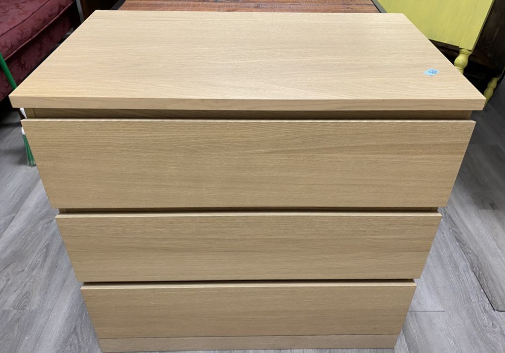 Three Drawer Pine Cabinet, modern piece, good condition. Location Middle Right Office Three Drawer Pine Cabinet, modern piece, good condition. Location Middle Right Office