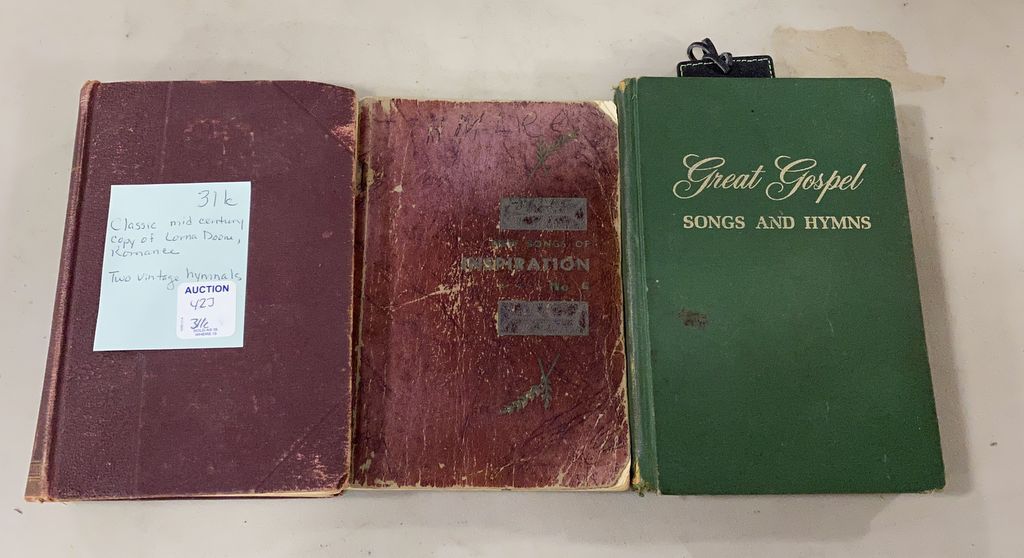 Classic Mid Century Copy of Lorna Doone Romance, two vintage hymnals Classic Mid Century Copy of Lorna Doone Romance, two vintage hymnals