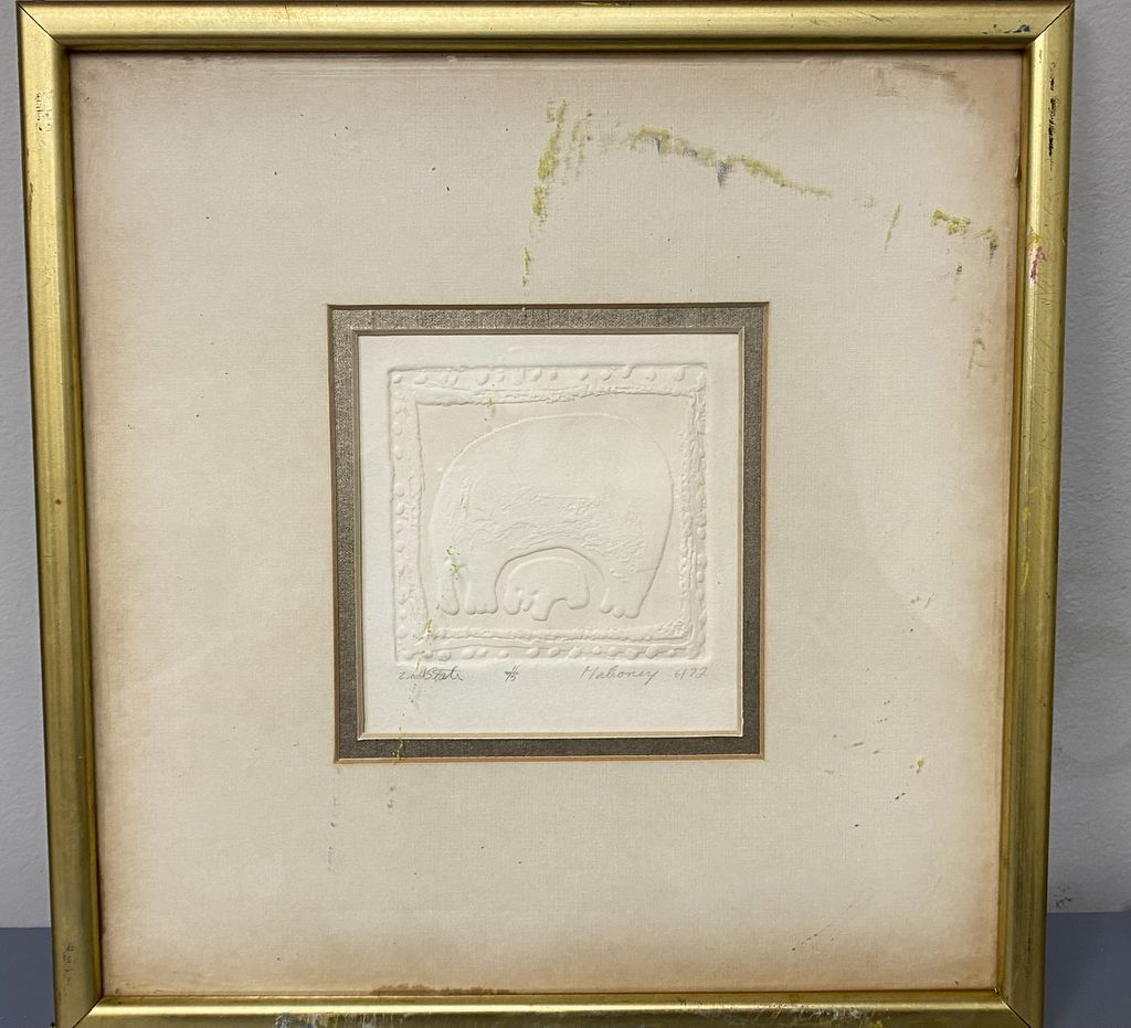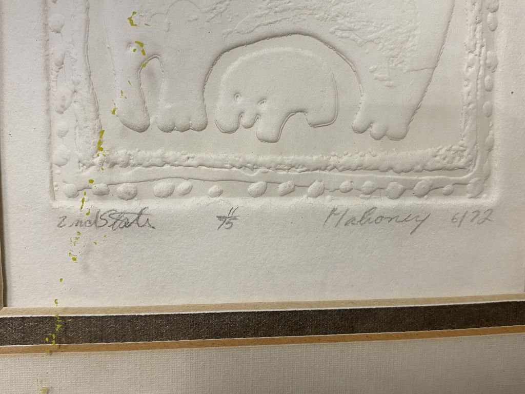 Mahoney "2nd State" 11/15 Paper Elephant Art, matted framed. Mahoney "2nd State" 11/15 Paper Elephant Art, matted framed.