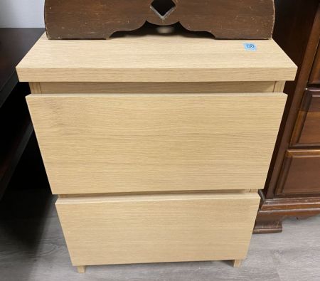 Two Drawer Pine Side Table, modern piece, good condition. Location Middle right Office Two Drawer Pine Side Table, modern piece, good condition. Location Middle right Office