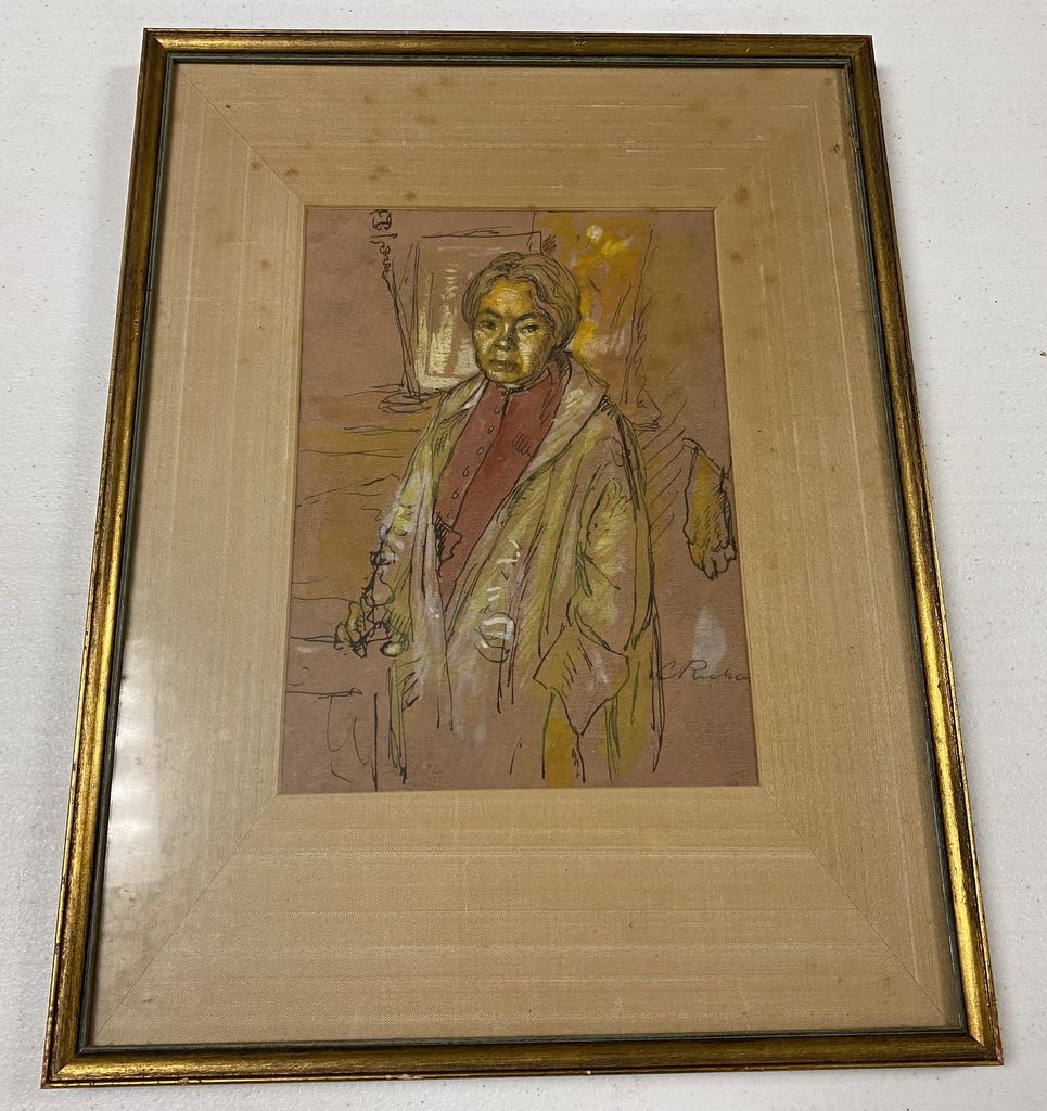 C. Richey Sketch Art of Woman, matted, framed C. Richey Sketch Art of Woman, matted, framed