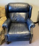 Blue Leather Recliner, light wear, good condition. Location Front Blue Leather Recliner, light wear, good condition. Location Front