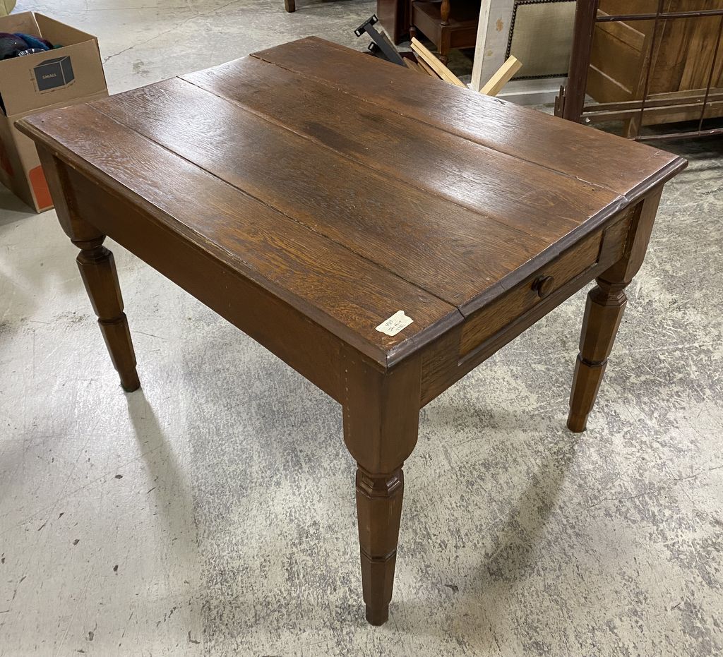 Large Oak Lamp Table, single drawer, needs some work, 24"h., 27"w., 35"d. Large Oak Lamp Table, single drawer, needs some work, 24"h., 27"w., 35"d.