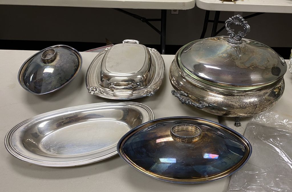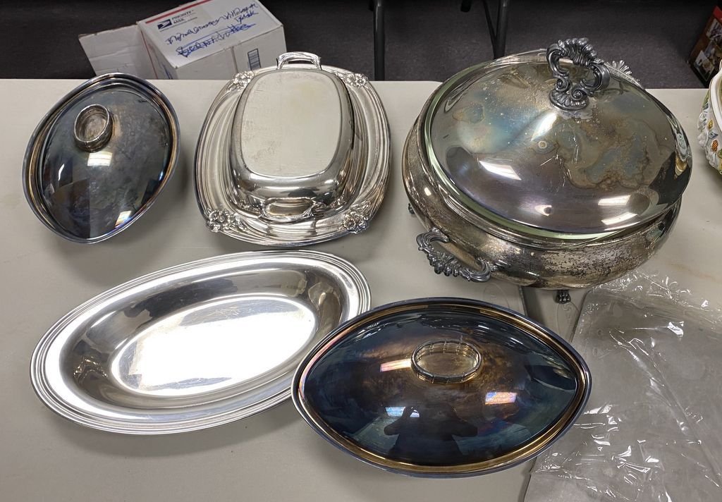 Group of Silver Plate Pieces, covered dish, tray, vegetable dish. Group of Silver Plate Pieces, covered dish, tray, vegetable dish.