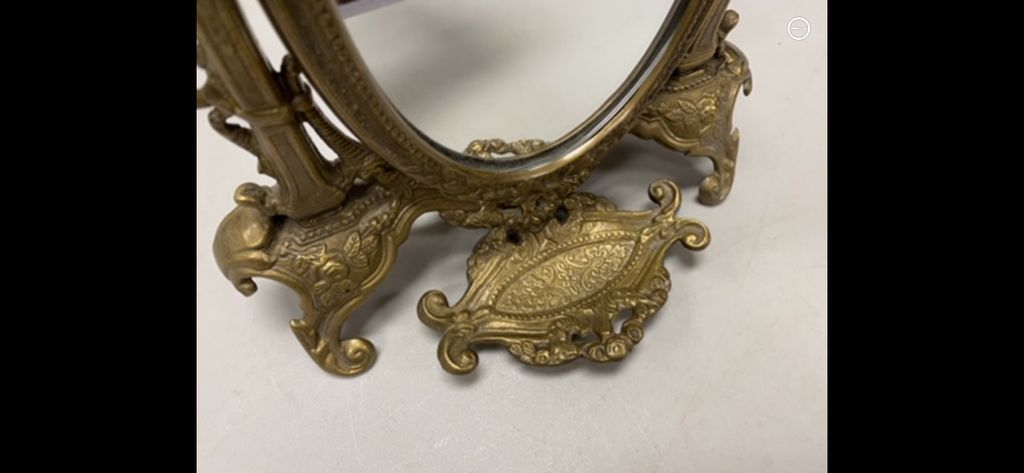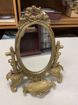 Vintage Brass Vanity Mirror, ornate design, oval mirror, location room by Kitchen Vintage Brass Vanity Mirror, ornate design, oval mirror, location room by Kitchen
