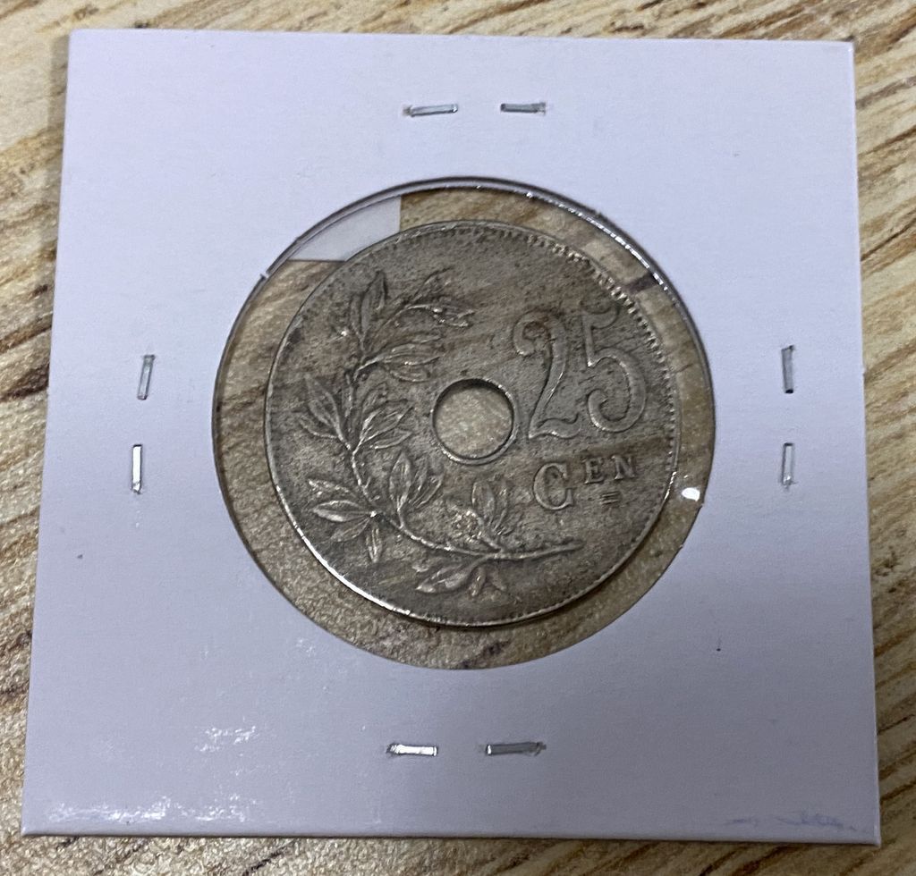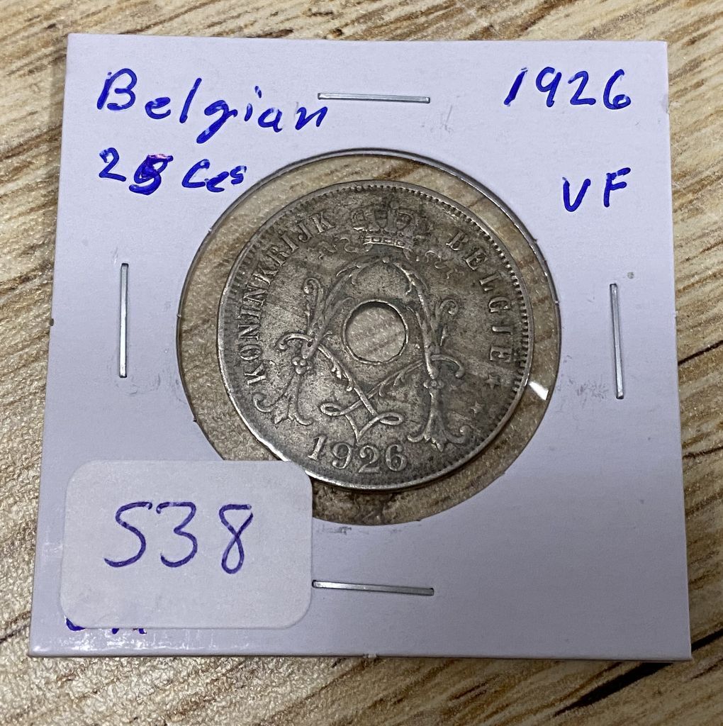 1926 Belgium 25 Ces, very fine, paper case. 1926 Belgium 25 Ces, very fine, paper case.
