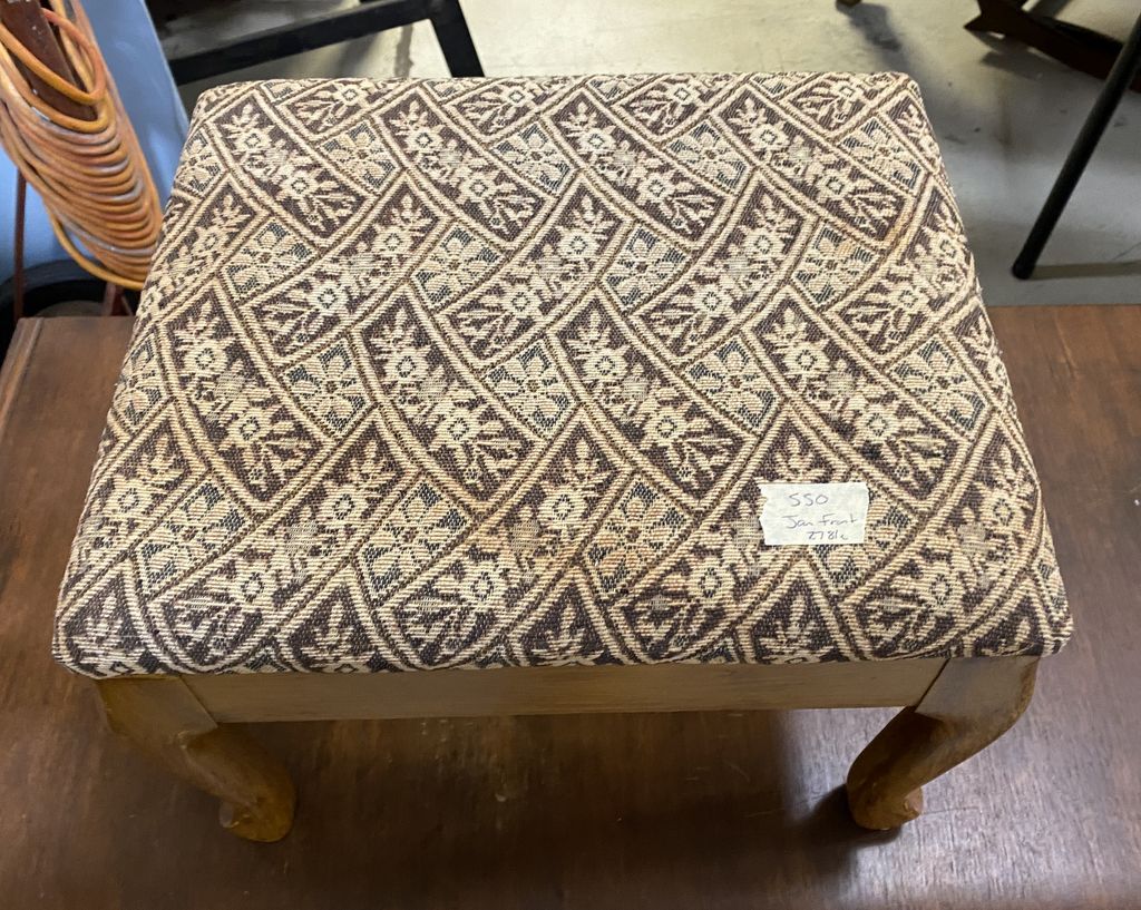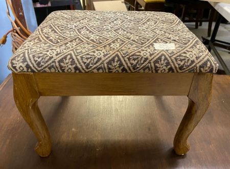 Small Queen Anne Footstool, fabric top, 10"h., 13"w. Small Queen Anne Footstool, fabric top, 10"h., 13"w.