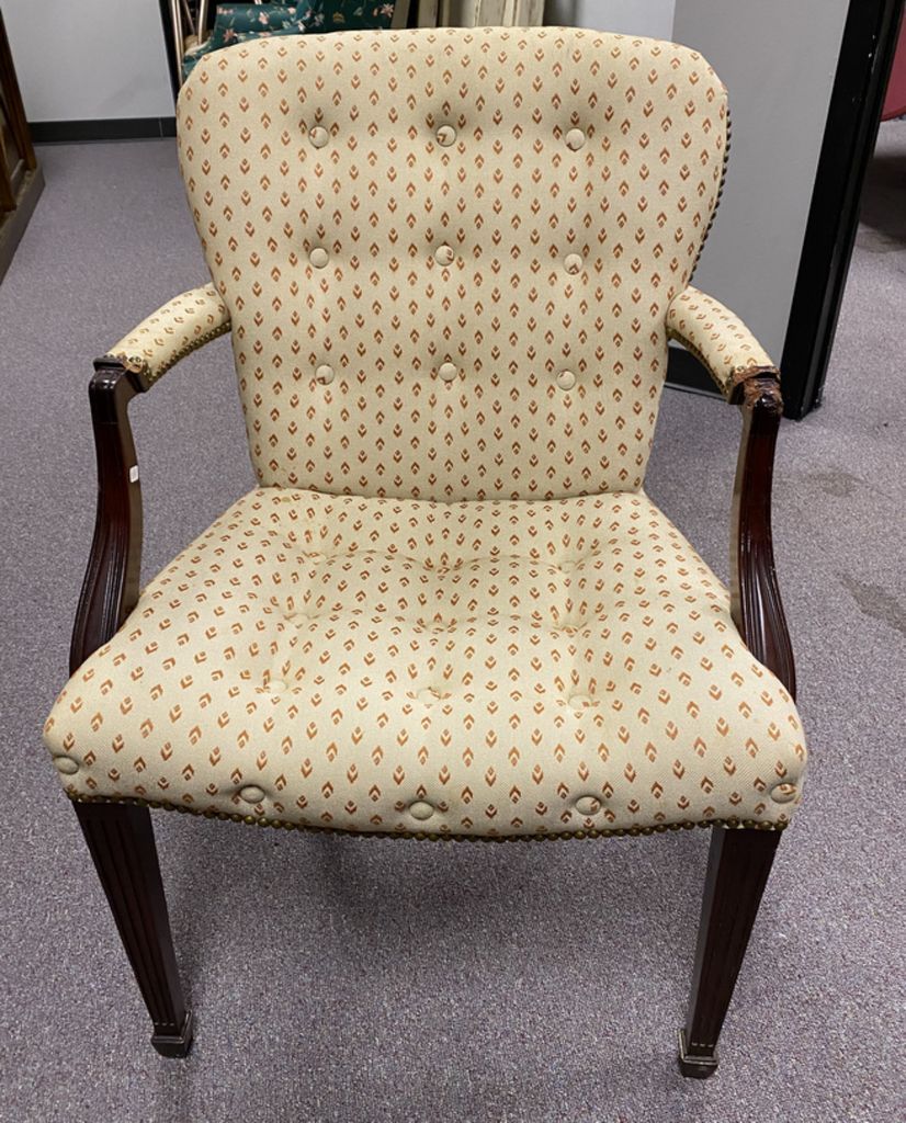 Sheraton Style Arm Side Chair, button tufted, cherry, good condition. Sheraton Style Arm Side Chair, button tufted, cherry, good condition.