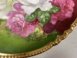 Three Signed Porcelain Plates, Roses, gold gilt rimmed. Three Signed Porcelain Plates, Roses, gold gilt rimmed.