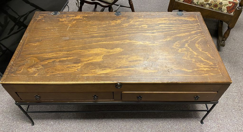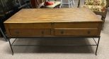 Modern Wood Coffee Table, metal base, two drawers, contemporary style. Modern Wood Coffee Table, metal base, two drawers, contemporary style.
