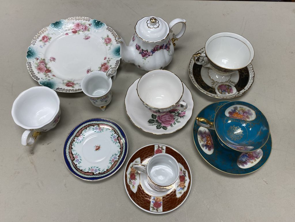 Group of Porcelain Cups and Saucers, plates, location room by Kitchen Group of Porcelain Cups and Saucers, plates, location room by Kitchen