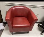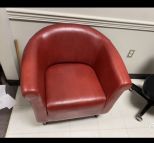 Red Vinyl Club Chair, good condition, Location Kitchen Red Vinyl Club Chair, good condition, Location Kitchen