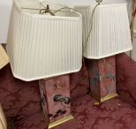 Pair of Decorative Brass and Painted Table Lamps, with shades. Pair of Decorative Brass and Painted Table Lamps, with shades.