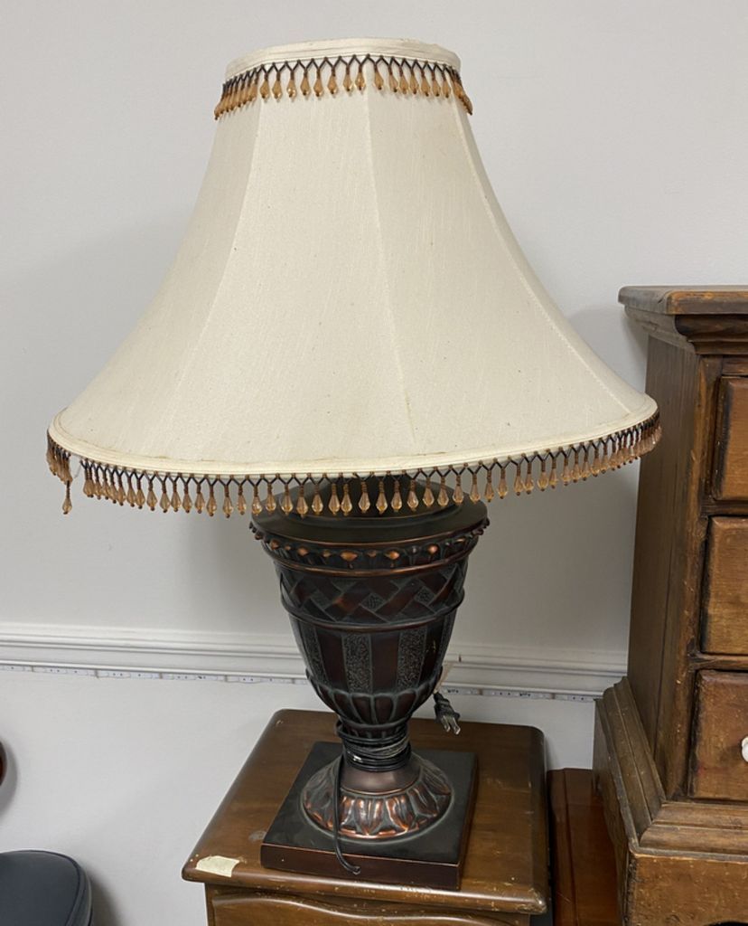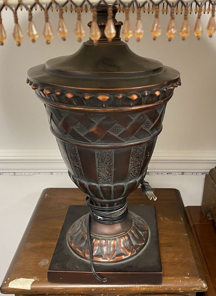 Decorative Resin Urn Lamp, with shade. Decorative Resin Urn Lamp, with shade.