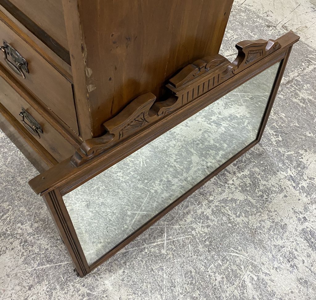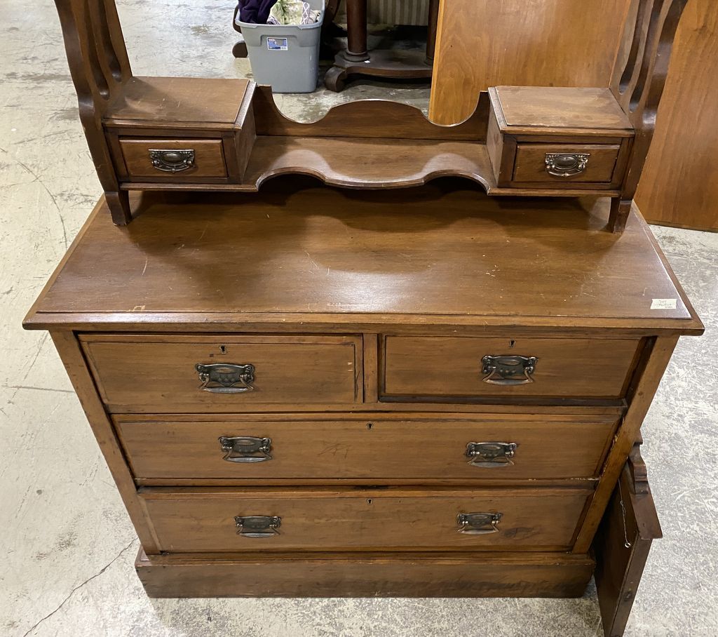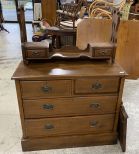 Victorian Style Dresser, four drawer, has top with beveled mirror, top needs to be attached, 58"h., 39"w., 17"d. Victorian Style Dresser, four drawer, has top with beveled mirror, top needs to be attached, 58"h., 39"w., 17"d.