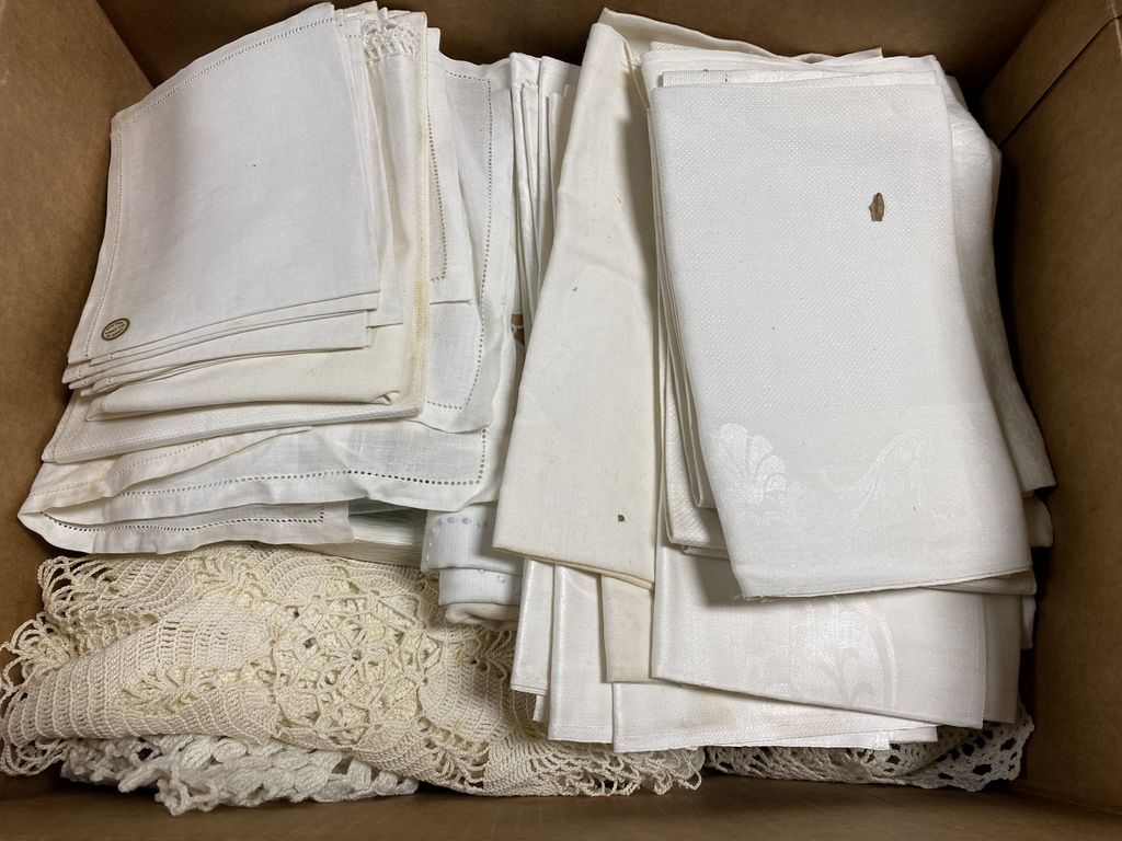 Box Lot of Table Linens and Crochets Box Lot of Table Linens and Crochets
