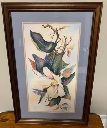 Signed B. Sumrall Magnolia Print, signed lower right, matted, framed Signed B. Sumrall Magnolia Print, signed lower right, matted, framed