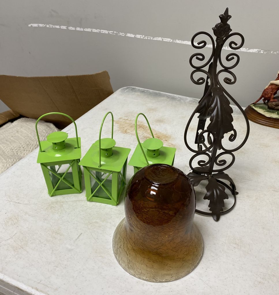 Wall Glass Candle Sconce and Three Mini Lanterns Wall Glass Candle Sconce and Three Mini Lanterns