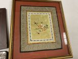 816 Framed Asian Silk, Silver Plate Picture Frame, and Small Frame