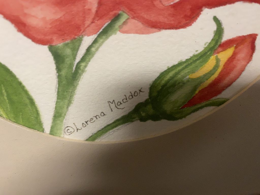 Lorena Maddox Rose Watercolor, oval matted, framed Lorena Maddox Rose Watercolor, oval matted, framed