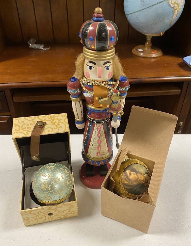 Nut Cracker Figurines, and Two Tree Ornaments Nut Cracker Figurines, and Two Tree Ornaments