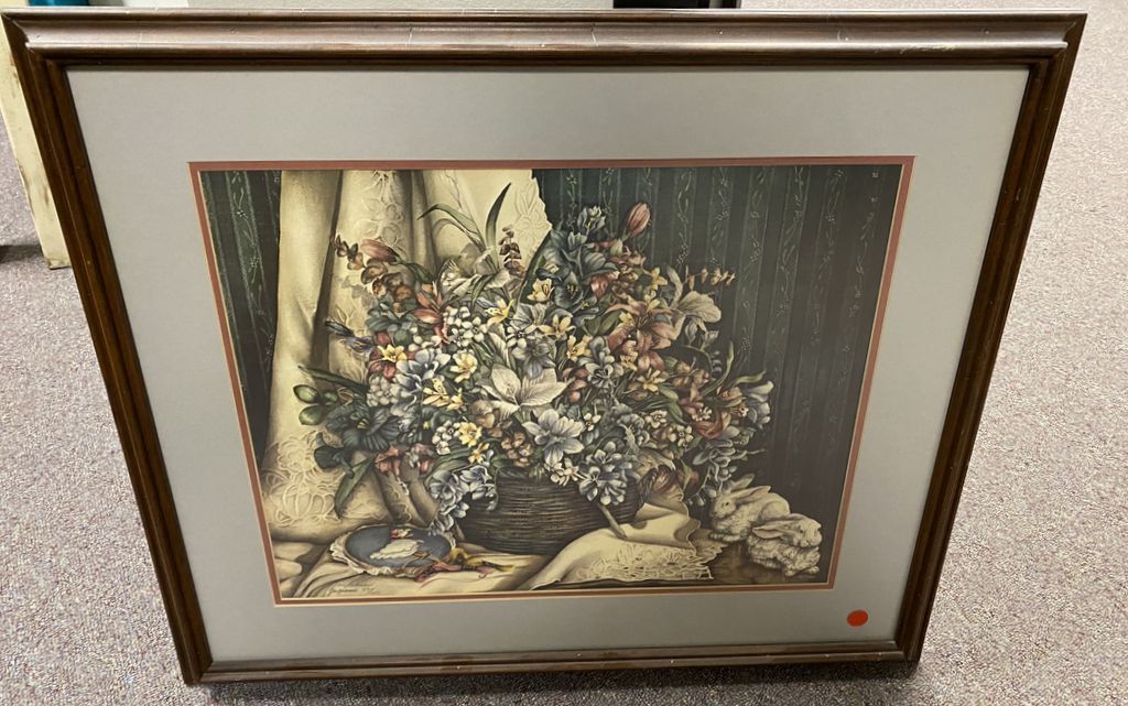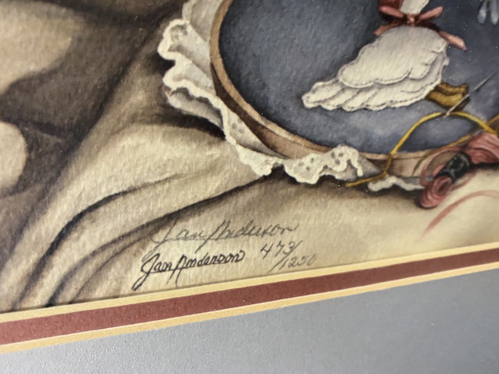 Jan Anderson Signed Flower Basket Print, number 473/1200, matted, framed. Jan Anderson Signed Flower Basket Print, number 473/1200, matted, framed.