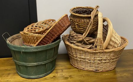 Group of Decorative Baskets, woven, different styles, and sizes Group of Decorative Baskets, woven, different styles, and sizes