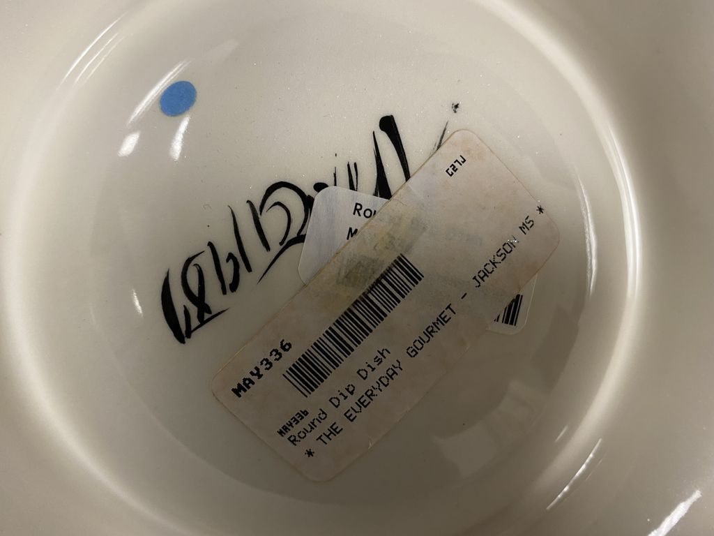 Signed Round Dip Dish, porcelain, hand painted. Signed Round Dip Dish, porcelain, hand painted.