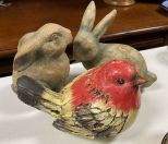 Two Pottery Rabbits, and Bird Two Pottery Rabbits, and Bird