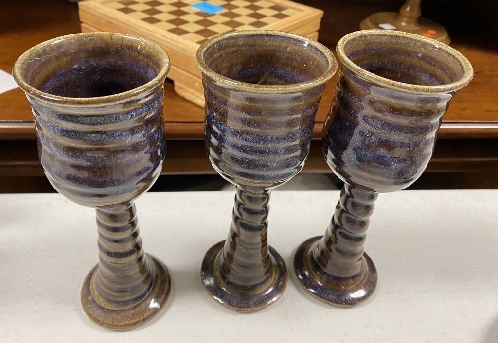 Three Stoneware Goblets, glazed Three Stoneware Goblets, glazed