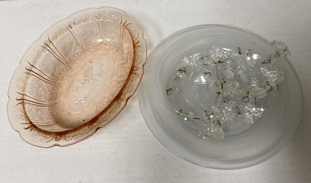 Depression Glass Bowl and 2 Frosted Glass Serving Plates Depression Glass Bowl and 2 Frosted Glass Serving Plates
