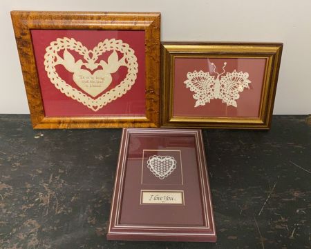 Dove and heart, butterfly, heart, framed Dove and heart, butterfly, heart, framed