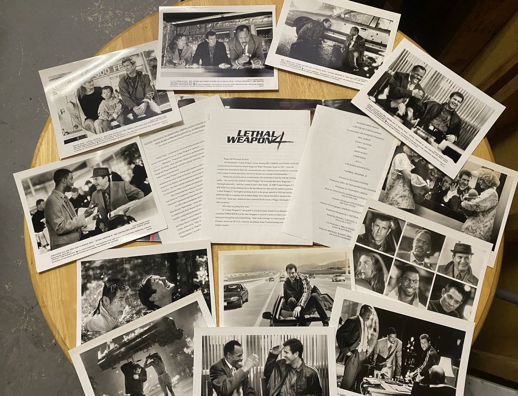 Lethal Weapon 4 Press Kit 1998. Includes Original Photographs. All Movie items are from the Estate and Private Collection of a Vice President of Warner Brothers. Lethal Weapon 4 Press Kit 1998. Includes Original Photographs. All Movie items are from the Estate and Private Collection of a Vice President of Warner Brothers.